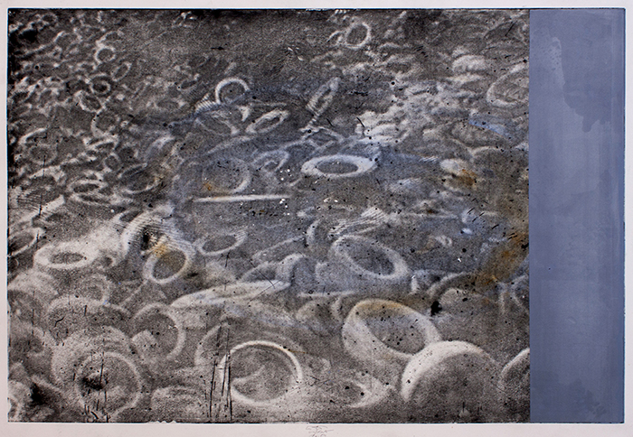 Wolke (2024), Radierung/Siebdruck Foto-Aquatinta mit Prägung auf Bütten, 80 x 220 cm, Unikat